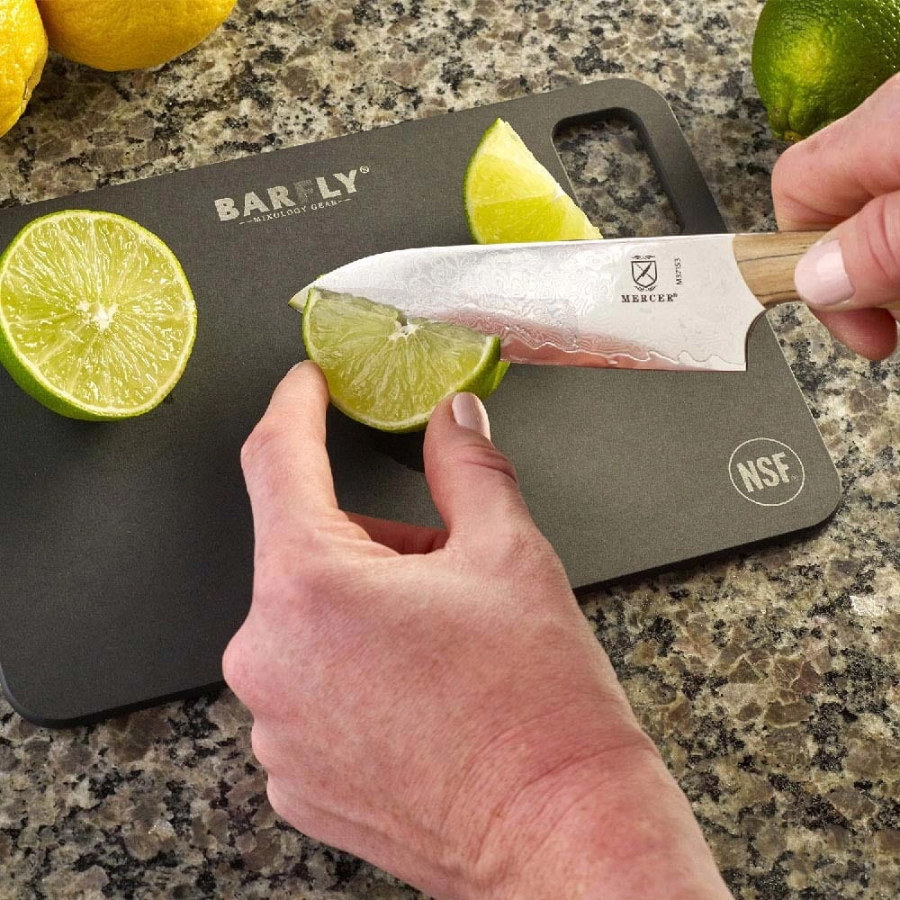 Idealny rozmiar do krojenia owoców i przygotowywania dodatków do koktajli. Cienki profil i niewielka waga są idealne do przenoszenia w dowolne miejsce, w którym musisz pracować. Ekologiczna konstrukcja z kompozytu papierowego nie pochłania zapachów.