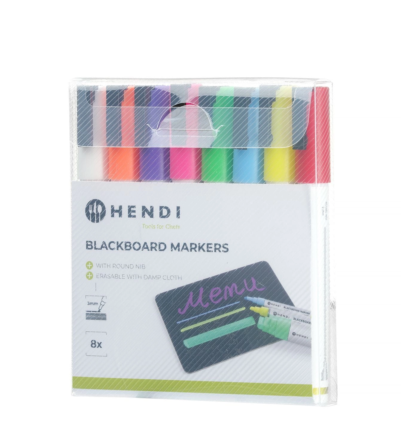 Markery do tablicy – z wąską końcówką, HENDI, 1 biały, 1 czerwony, 1 niebieski, 1 zielony, 1 żółty, 1 fioletowy, 1 pomarańczowy i 1 różowy marker