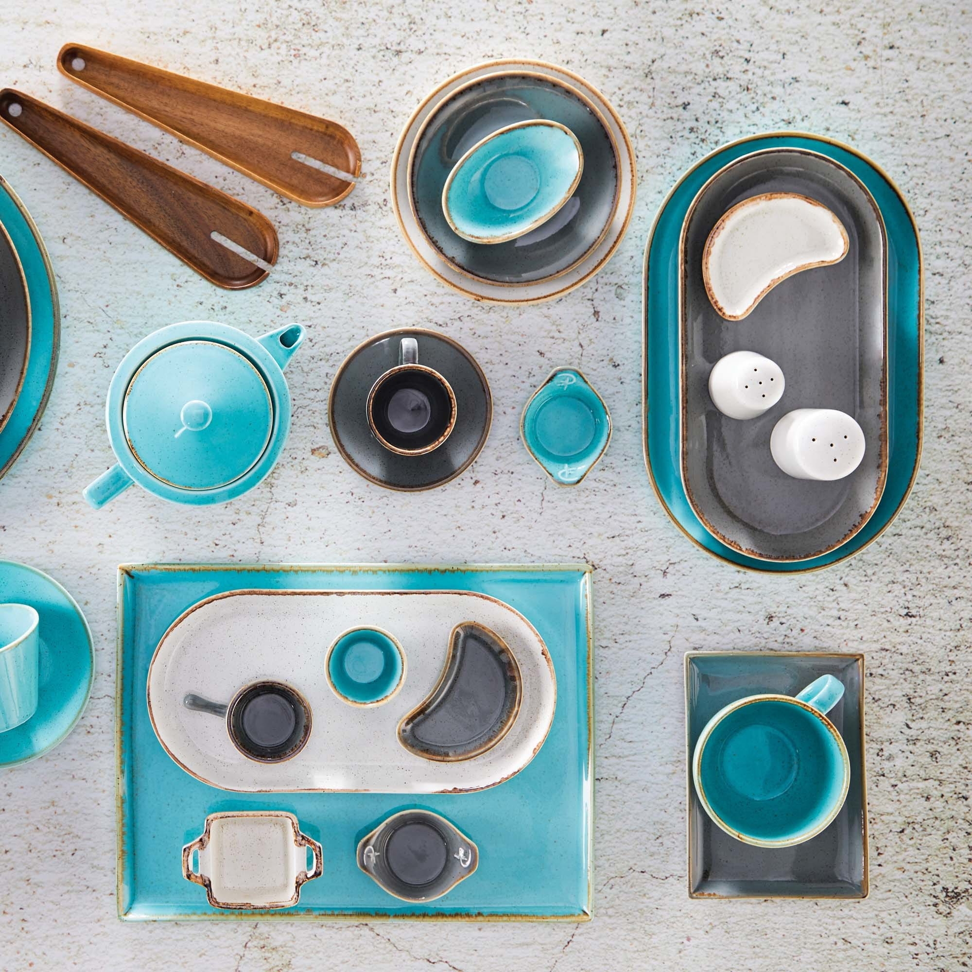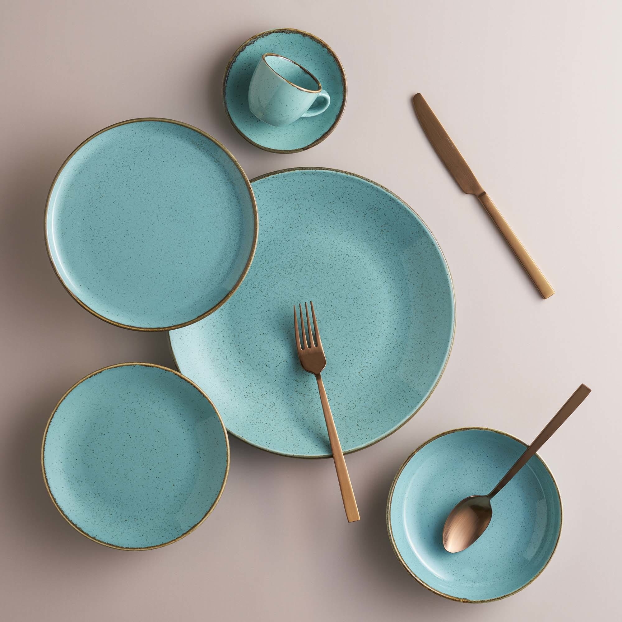 **Każdy element zastawy jest unikalny** Do barwienia produktów kolekcji Seasons Laguna wykorzystywane są naturalne barwniki, tlenki żelaza oraz ręczne techniki rzemieślnicze. Każdy element może inaczej reagować w procesie wypalania i szkliwienia, co skutkuje drobnymi różnicami w fakturze, tonacji i kolorze. Nie są to wady, lecz charakterystyczne cechy ręcznej produkcji i naturalnych materiałów.
