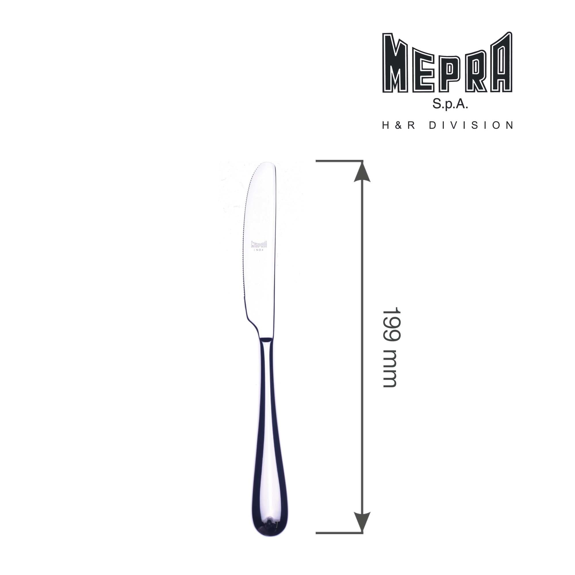 Mepra została założona w 1947 roku przez braci Prandelli w Lumezzane w głębokim sercu północnych Włoch. Kilka lat po założeniu, Mepra stała się pierwszą firmą we Włoszech, produkującą naczynia wykonane ze stali nierdzewnej 18/10, a w 1953 roku na fali ogromnego sukcesu produktów, firma decyduje się skierować całą produkcję na sztućce ze stali nierdzewnej. Podczas swojej ponad 60-letniej historii, Mepra zawsze kierowała się potrzebą innowacji, starając się znaleźć najlepsze sposoby na połączenie praktyczności, elegancji, piękna i, co najważniejsze, najwyższej jakości. Sztućce z grubej stali nierdzewnej 18/10 zaprojektowane w całości przez nagradzanych włoskich projektantów Wyjątkowa na skalę światową technologia- Mepra jako pierwsza na świecie stal nierdzewną poddała obróbce fizycznego osadzania pary wodnej (PVD), jako jedni z nielicznych przed obróbką PVD polerują każdy element zapewniając niespotykaną trwałość wykończenia. Kolekcje składają się z szerokiej gamy elementów, w tym do serwowania. Zęby widelców są polerowane ze wszystkich stron, aby zapewnić dożywotnią wydajność. Ostrza noży posiadają mikrożłobienia z obu stron dla bezwysiłkowego krojenia. Satysfakcja i szczęście naszych klientów jest motorem napędowym firmy Mepra. Dlatego też oferują szeroki zakres rozwiązań, które przekształcą produkty w coś naprawdę wyjątkowego, od wyboru pożądanego modelu po wykończenie kolorystyczne, kompozycję zestawu, grawerowanie i pakowanie.