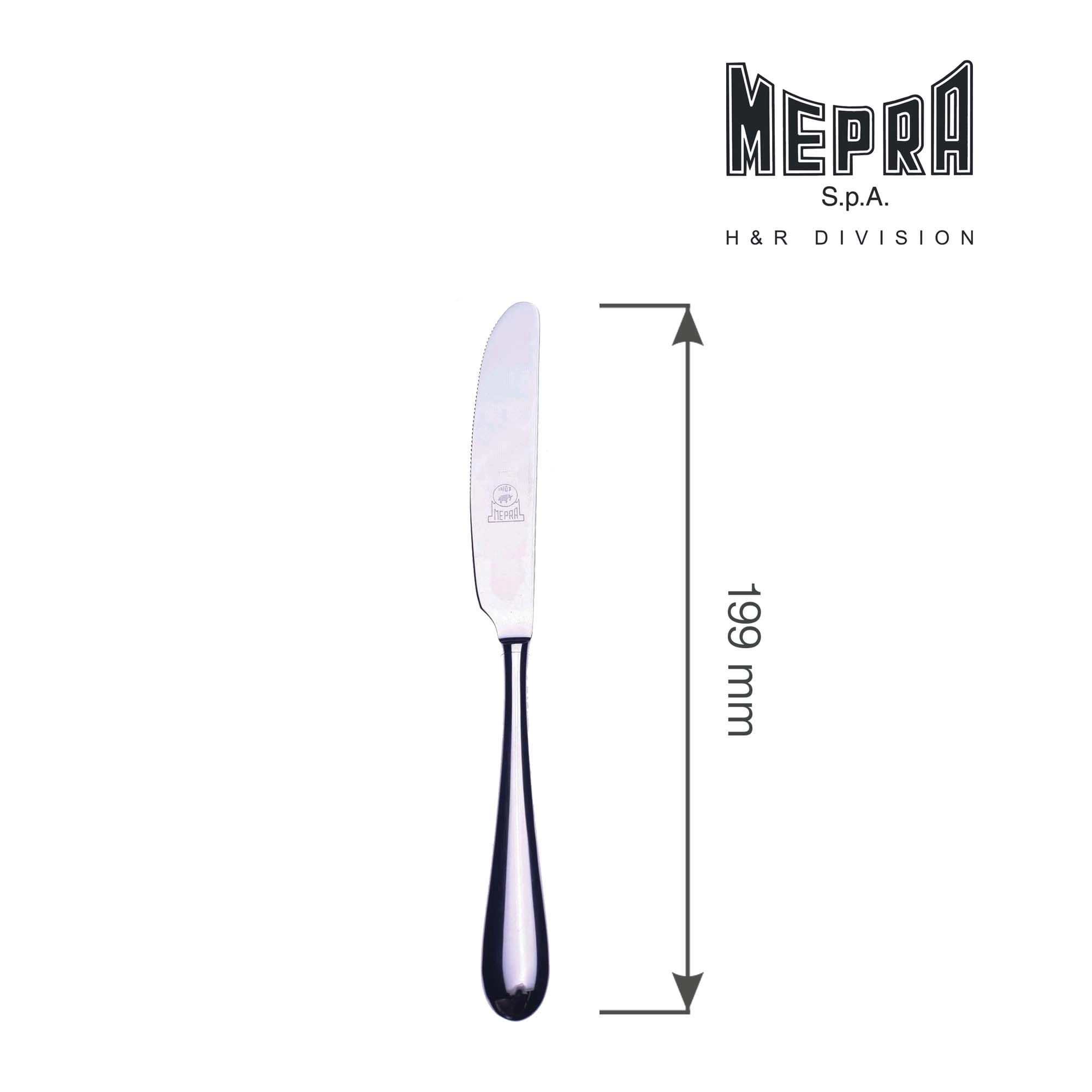 Mepra została założona w 1947 roku przez braci Prandelli w Lumezzane w głębokim sercu północnych Włoch. Kilka lat po założeniu, Mepra stała się pierwszą firmą we Włoszech, produkującą naczynia wykonane ze stali nierdzewnej 18/10, a w 1953 roku na fali ogromnego sukcesu produktów, firma decyduje się skierować całą produkcję na sztućce ze stali nierdzewnej. Podczas swojej ponad 60-letniej historii, Mepra zawsze kierowała się potrzebą innowacji, starając się znaleźć najlepsze sposoby na połączenie praktyczności, elegancji, piękna i, co najważniejsze, najwyższej jakości. Sztućce z grubej stali nierdzewnej 18/10 zaprojektowane w całości przez nagradzanych włoskich projektantów Wyjątkowa na skalę światową technologia- Mepra jako pierwsza na świecie stal nierdzewną poddała obróbce fizycznego osadzania pary wodnej (PVD), jako jedni z nielicznych przed obróbką PVD polerują każdy element zapewniając niespotykaną trwałość wykończenia. Kolekcje składają się z szerokiej gamy elementów, w tym do serwowania. Zęby widelców są polerowane ze wszystkich stron, aby zapewnić dożywotnią wydajność. Ostrza noży posiadają mikrożłobienia z obu stron dla bezwysiłkowego krojenia. Satysfakcja i szczęście naszych klientów jest motorem napędowym firmy Mepra. Dlatego też oferują szeroki zakres rozwiązań, które przekształcą produkty w coś naprawdę wyjątkowego, od wyboru pożądanego modelu po wykończenie kolorystyczne, kompozycję zestawu, grawerowanie i pakowanie.