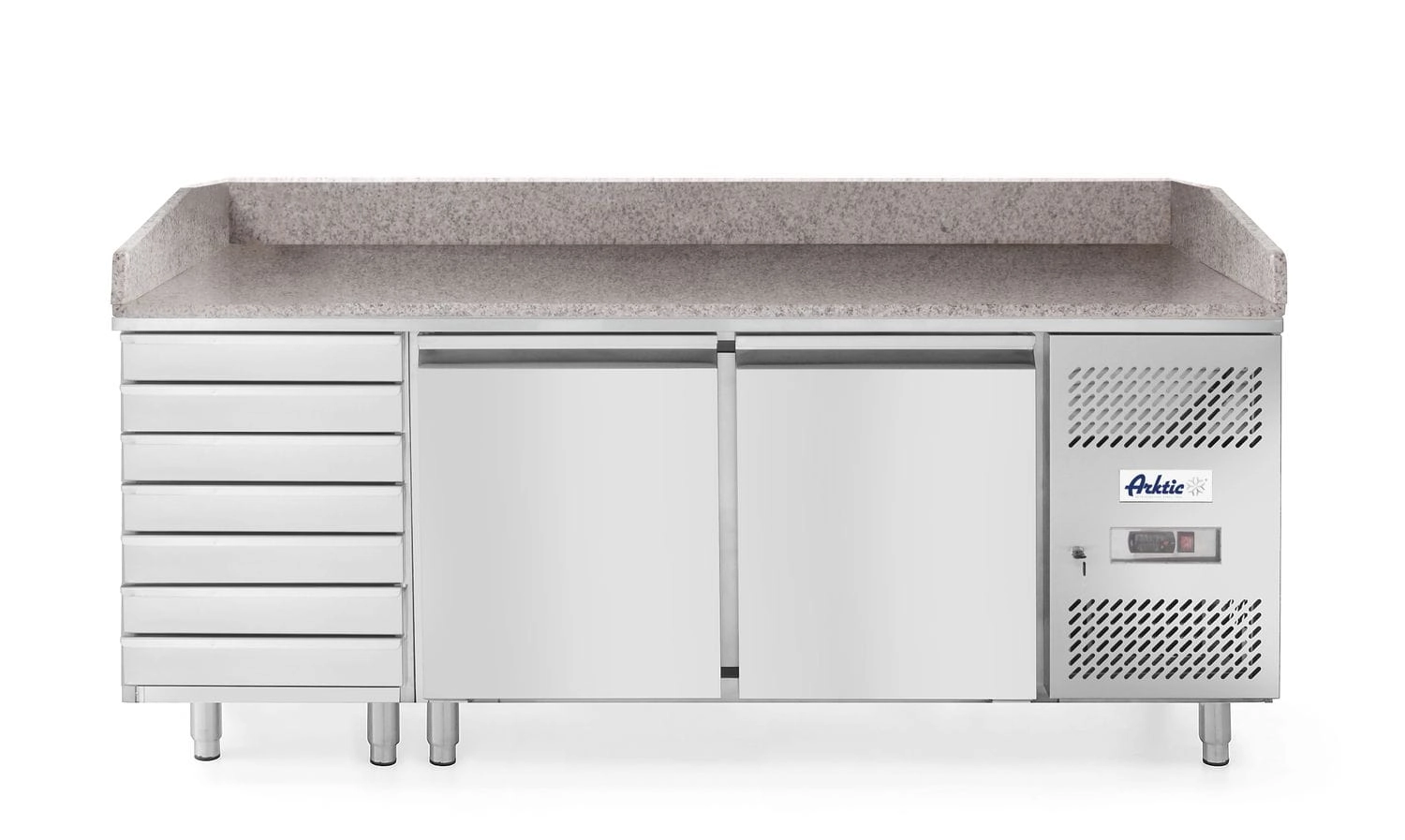 Stół chłodniczy do pizzy 2-drzwiowy z 7 szufladami i blatem granitowym, Arktic, 250L, 230V/250W, 2020x802x(H)1000mm