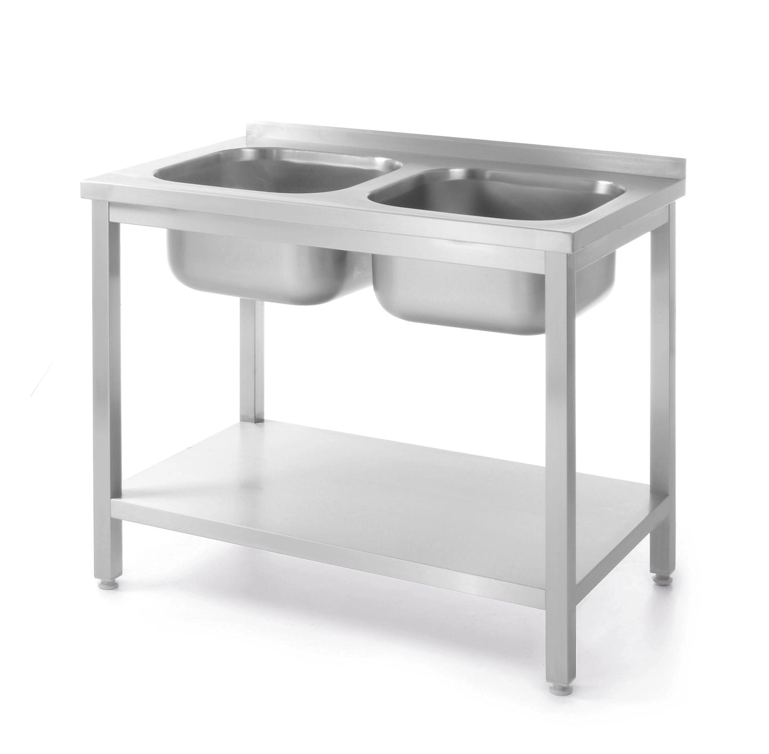 Stół z 2 zlewami i półką – skręcany, HENDI, Kitchen Line, dwa zlewy, 1000x600x(H)850mm