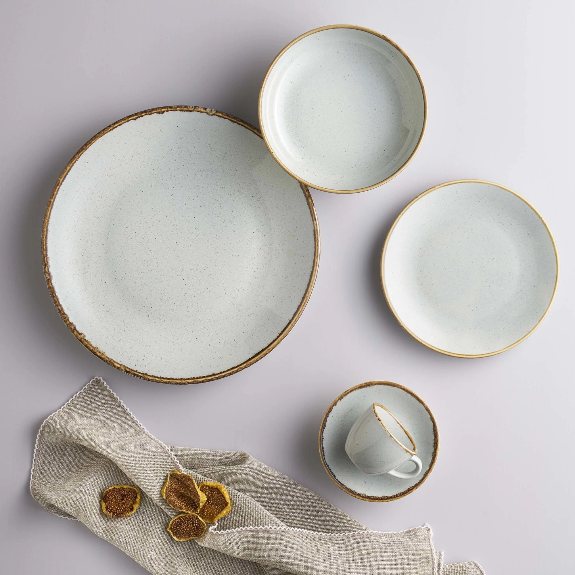 **Każdy element zastawy jest unikalny** Do barwienia produktów kolekcji Seasons Ashen wykorzystywane są naturalne barwniki, tlenki żelaza oraz ręczne techniki rzemieślnicze. Podczas procesu wypalania i szkliwienia każdy element może reagować odmiennie, co powoduje różnice w fakturze, tonacji i kolorze. Są to naturalne cechy wynikające z ręcznej produkcji i użycia naturalnych materiałów, a nie wady produktu.